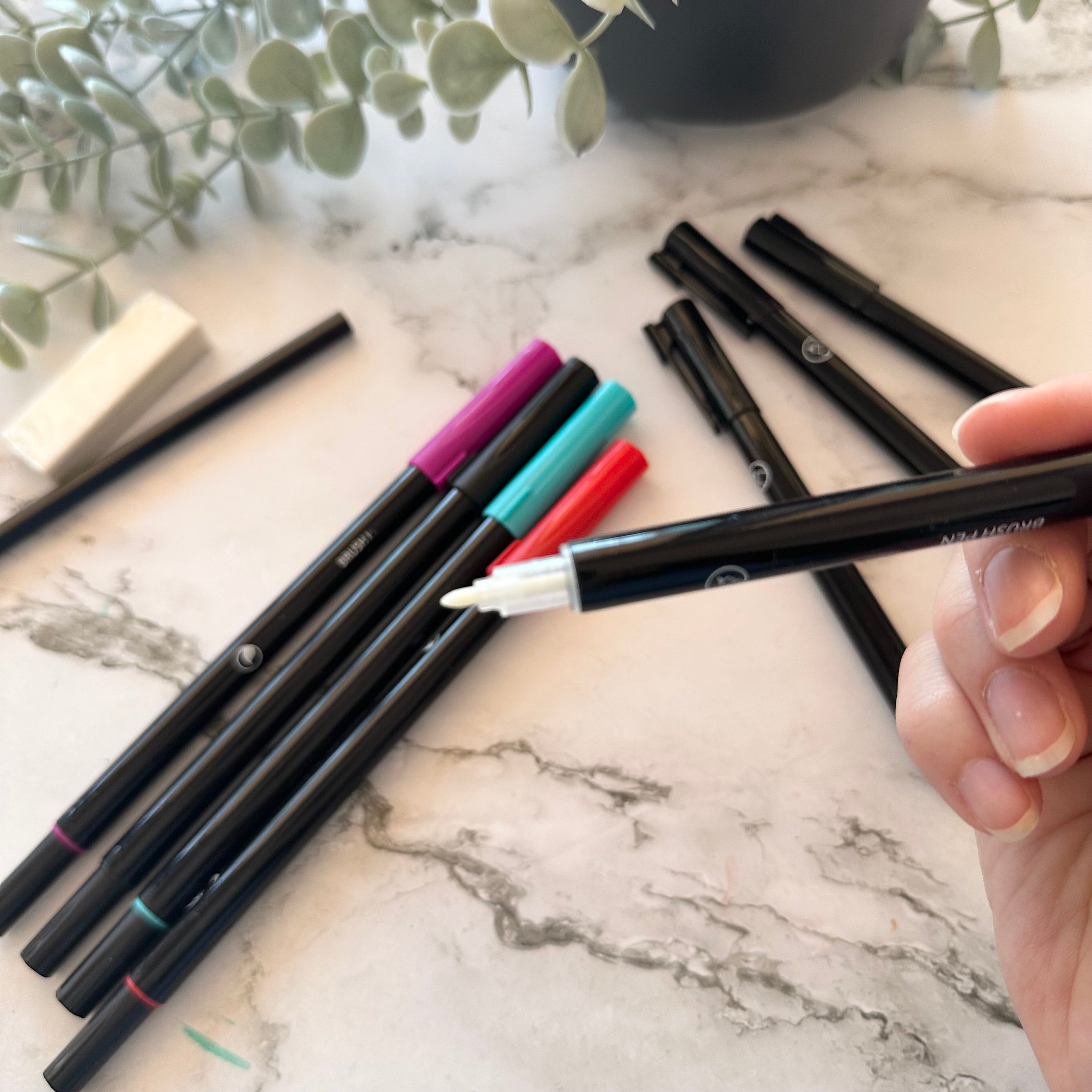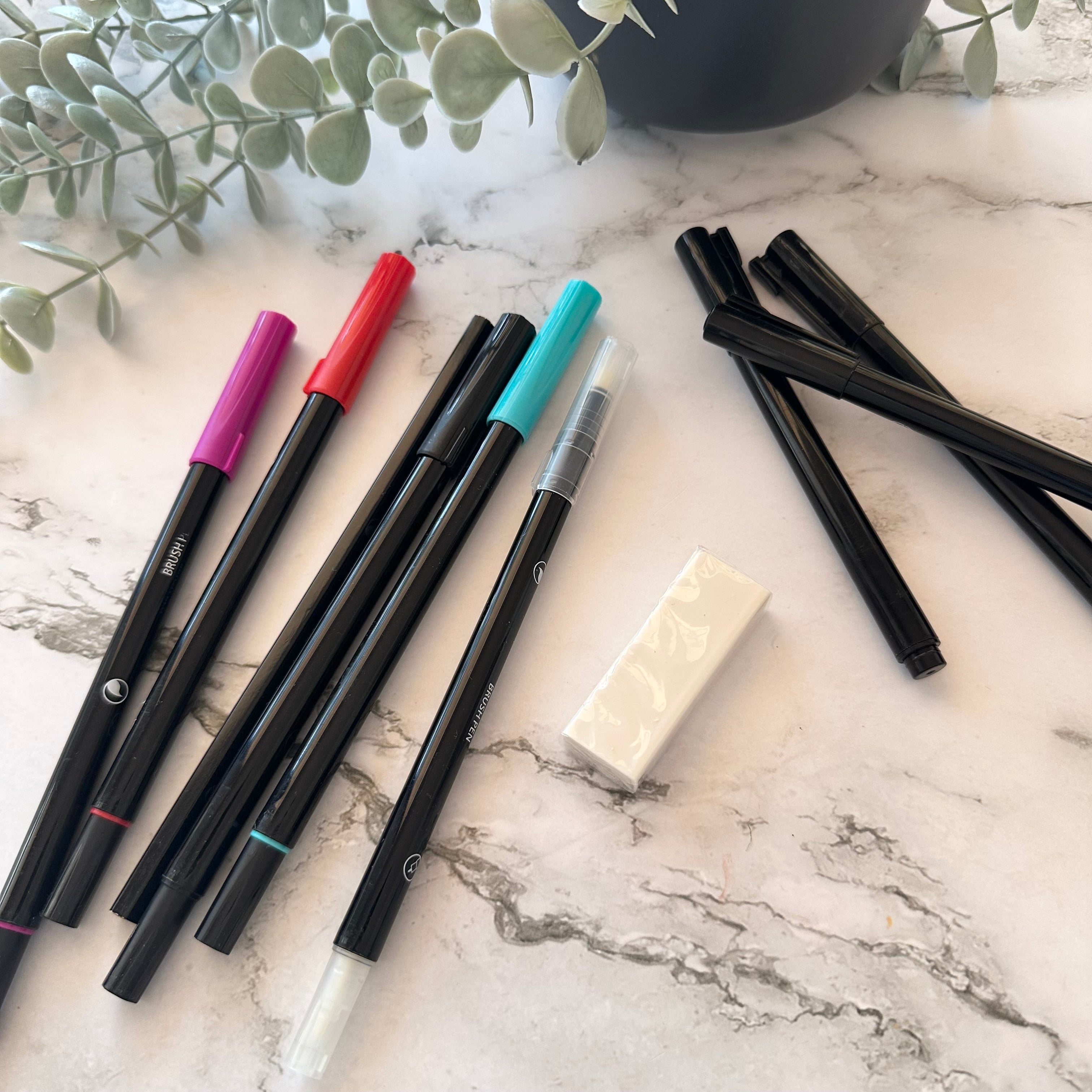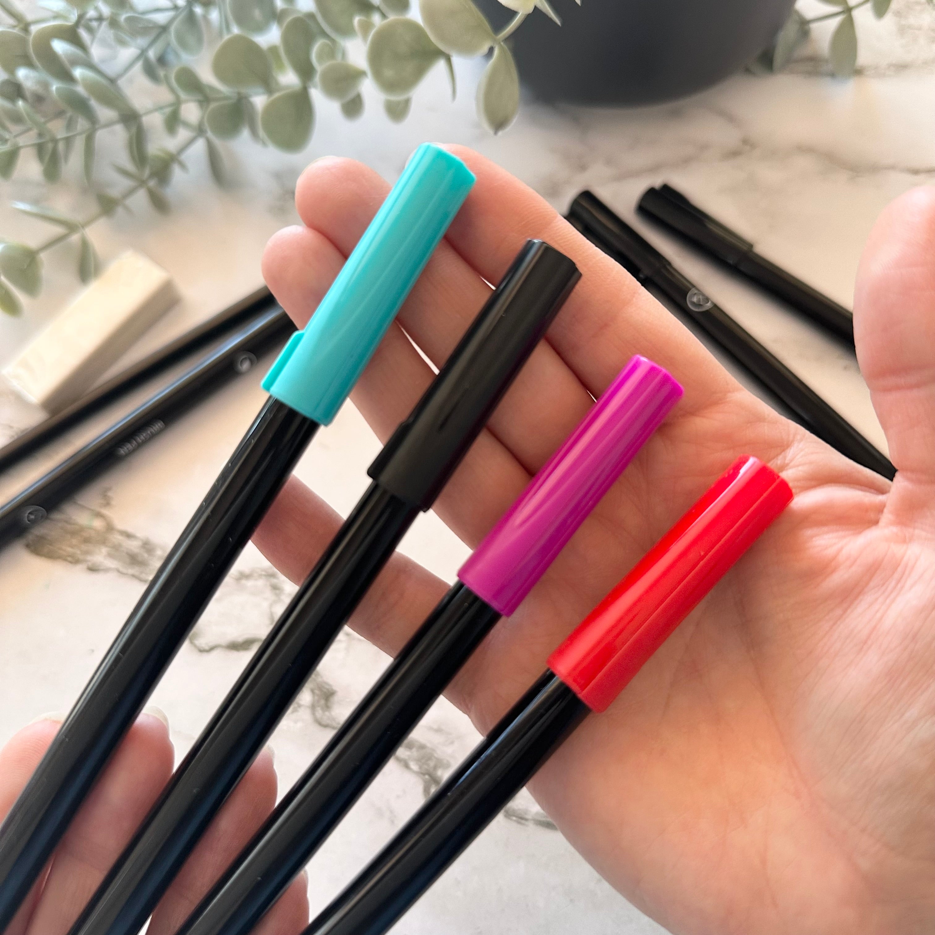4 × Dual brush pens (black, red, magenta, turquoise)