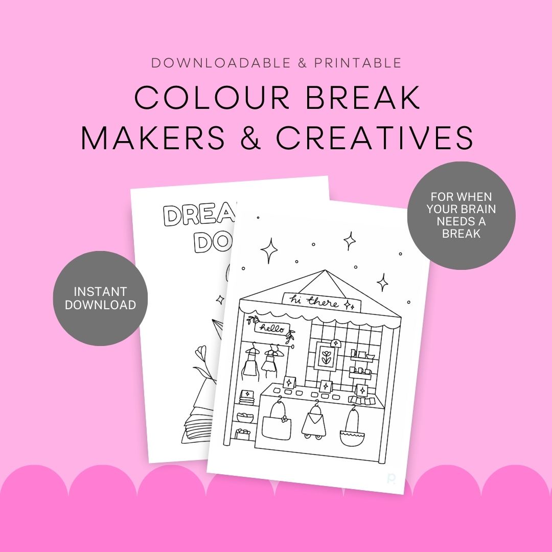 Take a purposeful brain break with our Goal Getter Colouring Sheet Pack, designed for makers and creatives. This pack includes 3 colouring sheets for you to print out and colour in.