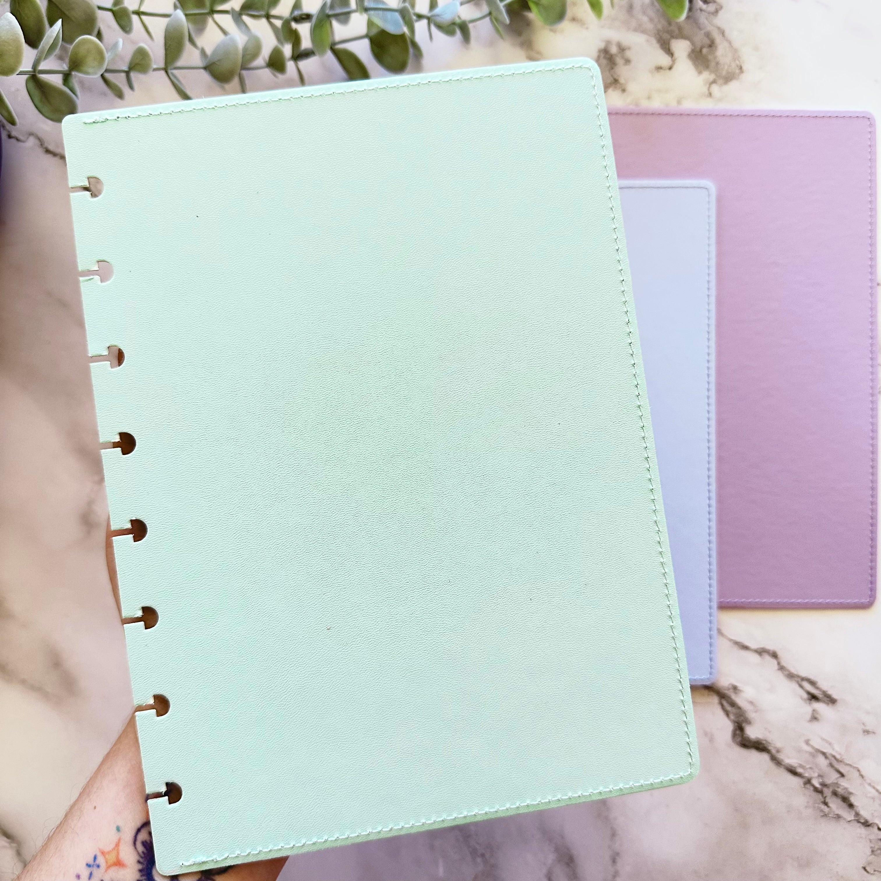 These A5 discbound planner cover sets are the perfect base for building your own discbound planner or journal. Made from durable PU vegan leather, they feature mushroom-punched holes so you can easily clip in discs, add inserts, and rearrange pages whenever you like.