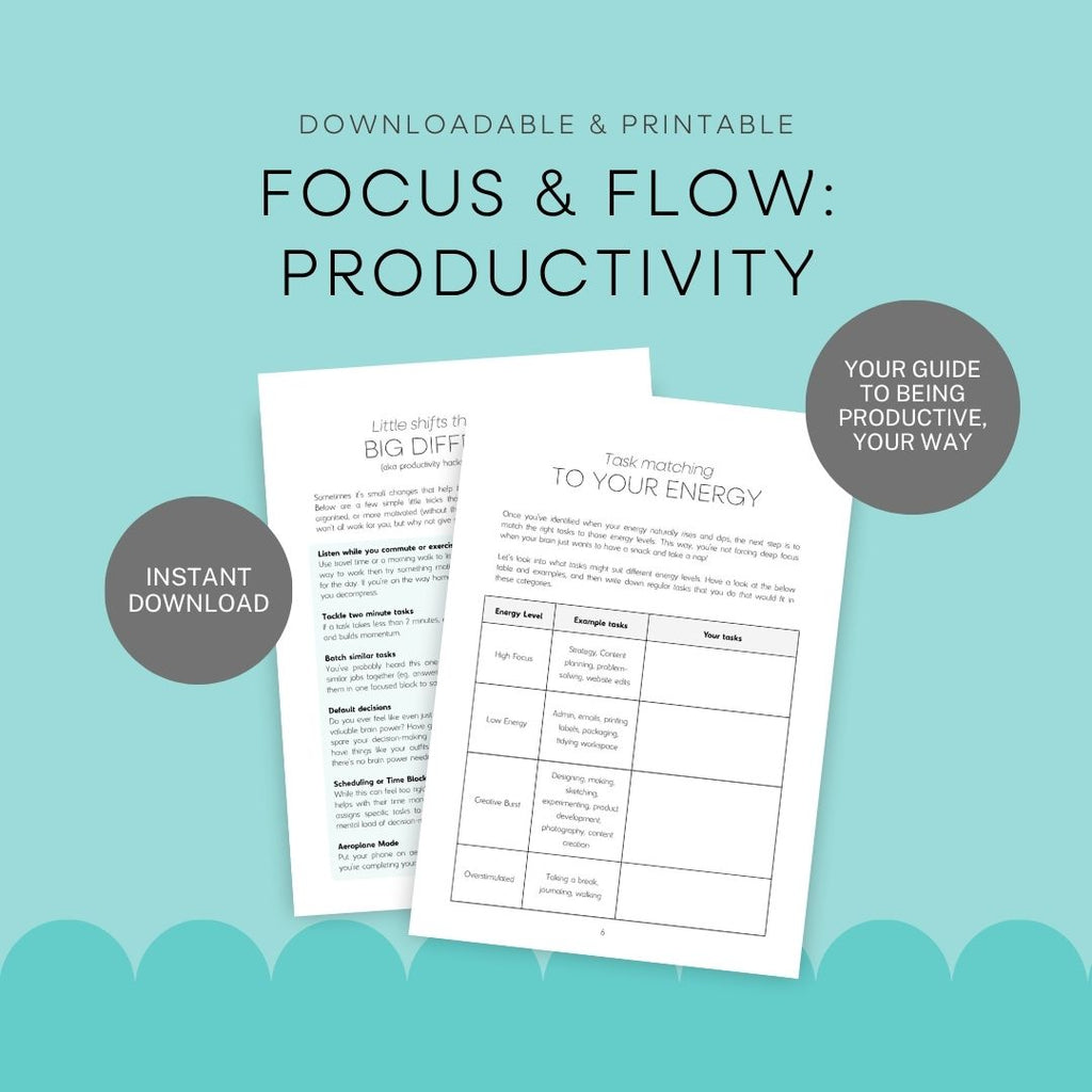 Our collection of small business printables are here to help you plan, reflect, grow, and unwind. From business planning worksheets and goal-setting templates, to printable checklists, habit trackers, and brain break tools, these downloadable PDFs are designed to support you in running your business and staying afloat in the daily chaos.