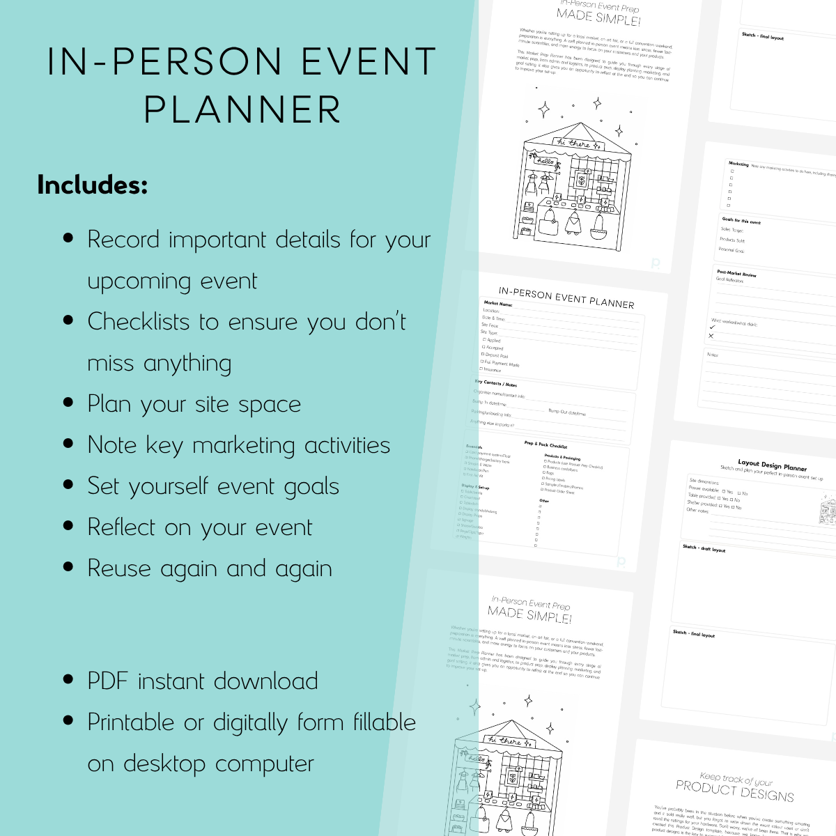 This In-Person Event Planner is your ultimate guide to planning, organising, and reflecting on every part of your event journey. It takes you step-by-step through the full process, from admin and logistics to product prep, display design, marketing, and post-event reflection.
