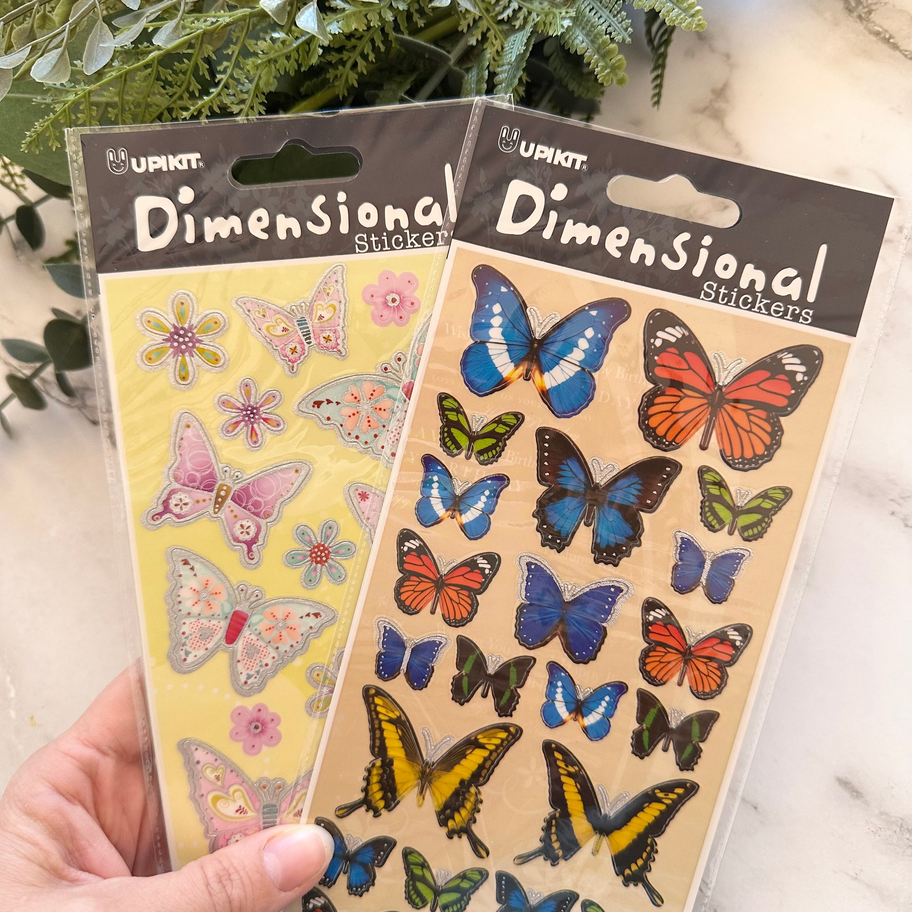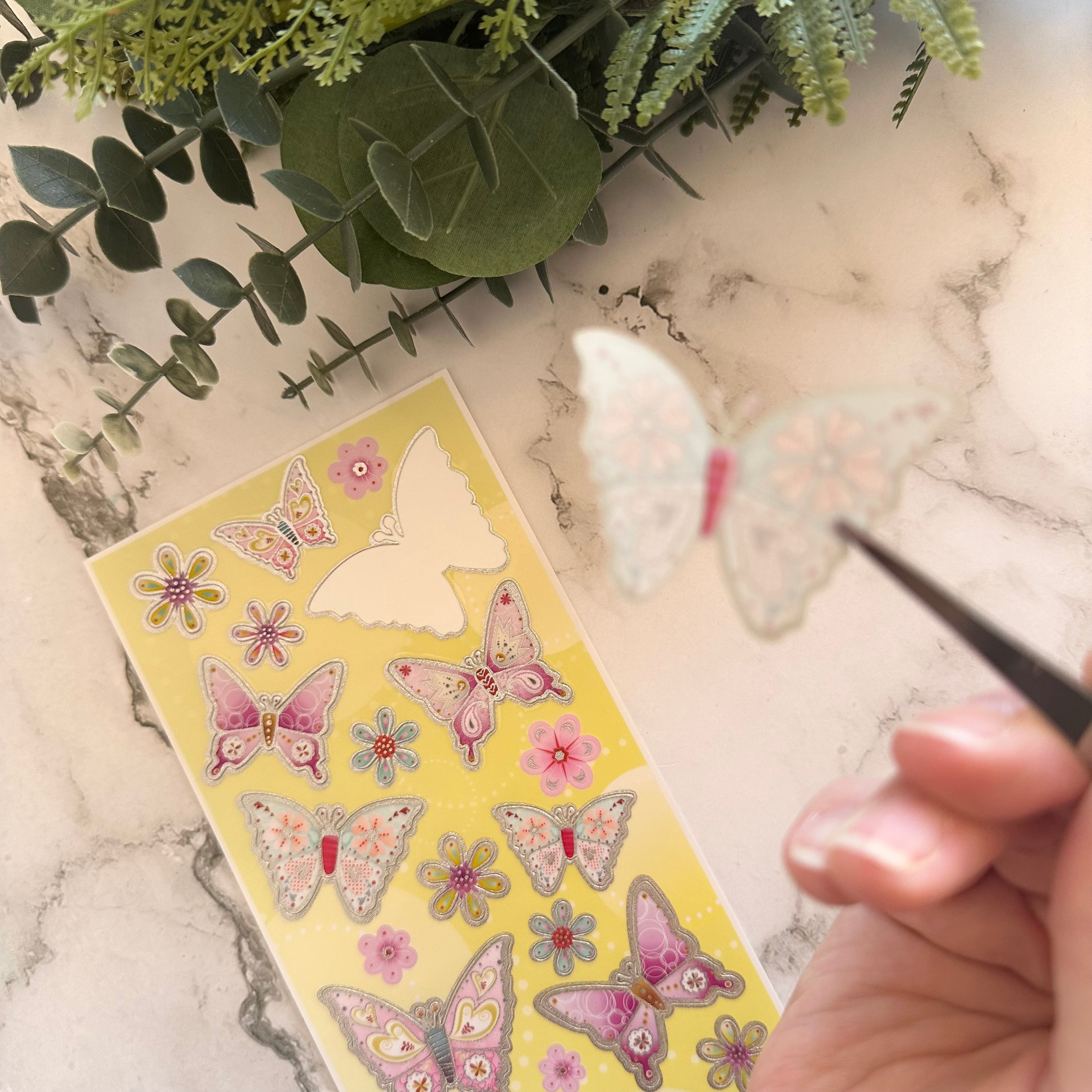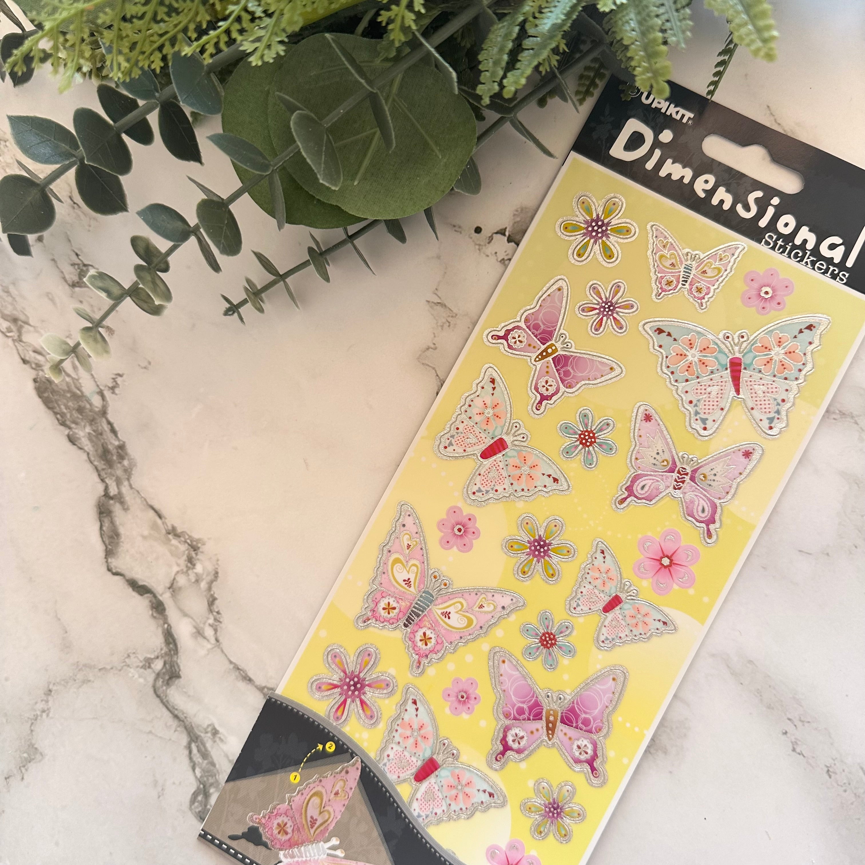 Each pack includes approximately 25 beautifully detailed butterfly and floral stickers designed with a raised, three-dimensional effect. The stickers adhere at the body, allowing the wings to be gently lifted for a realistic, layered look that adds depth and visual interest to your pages.