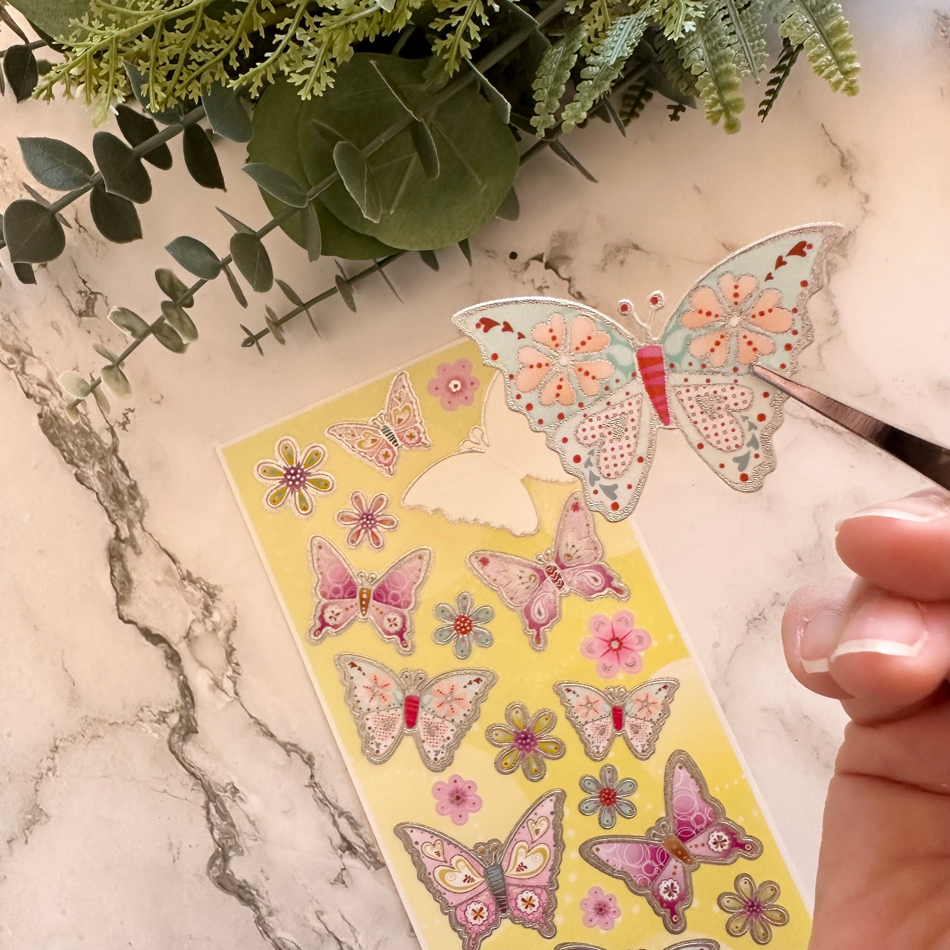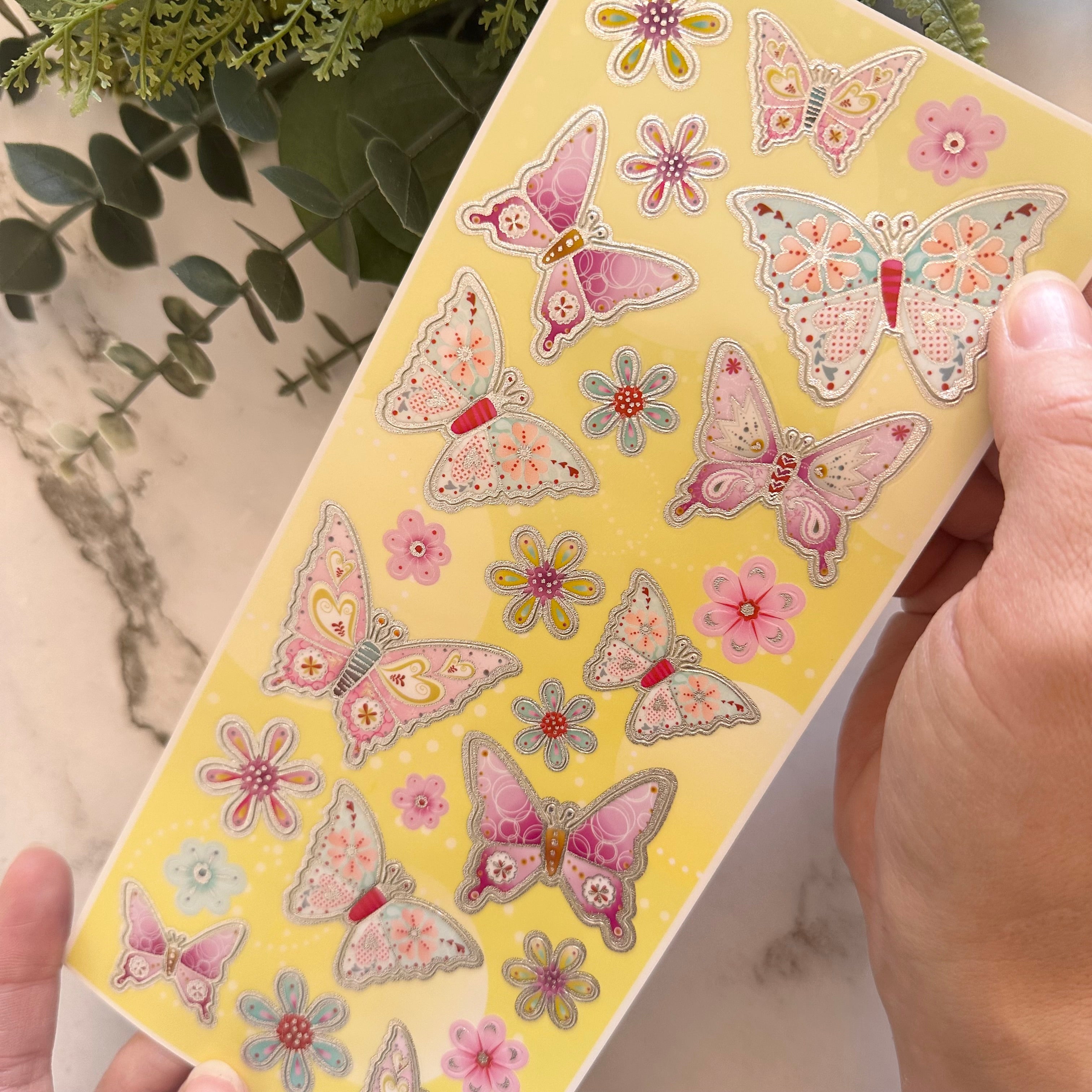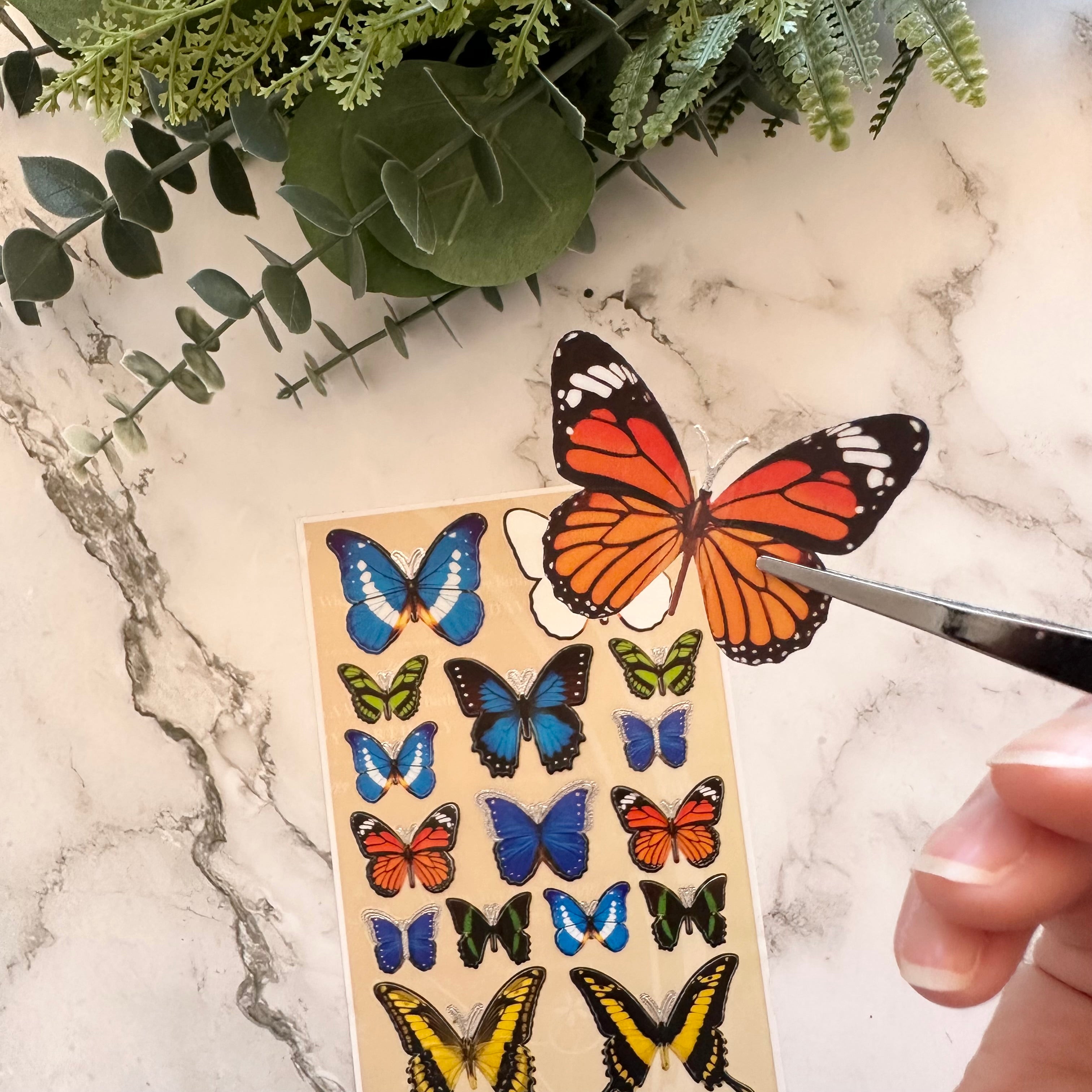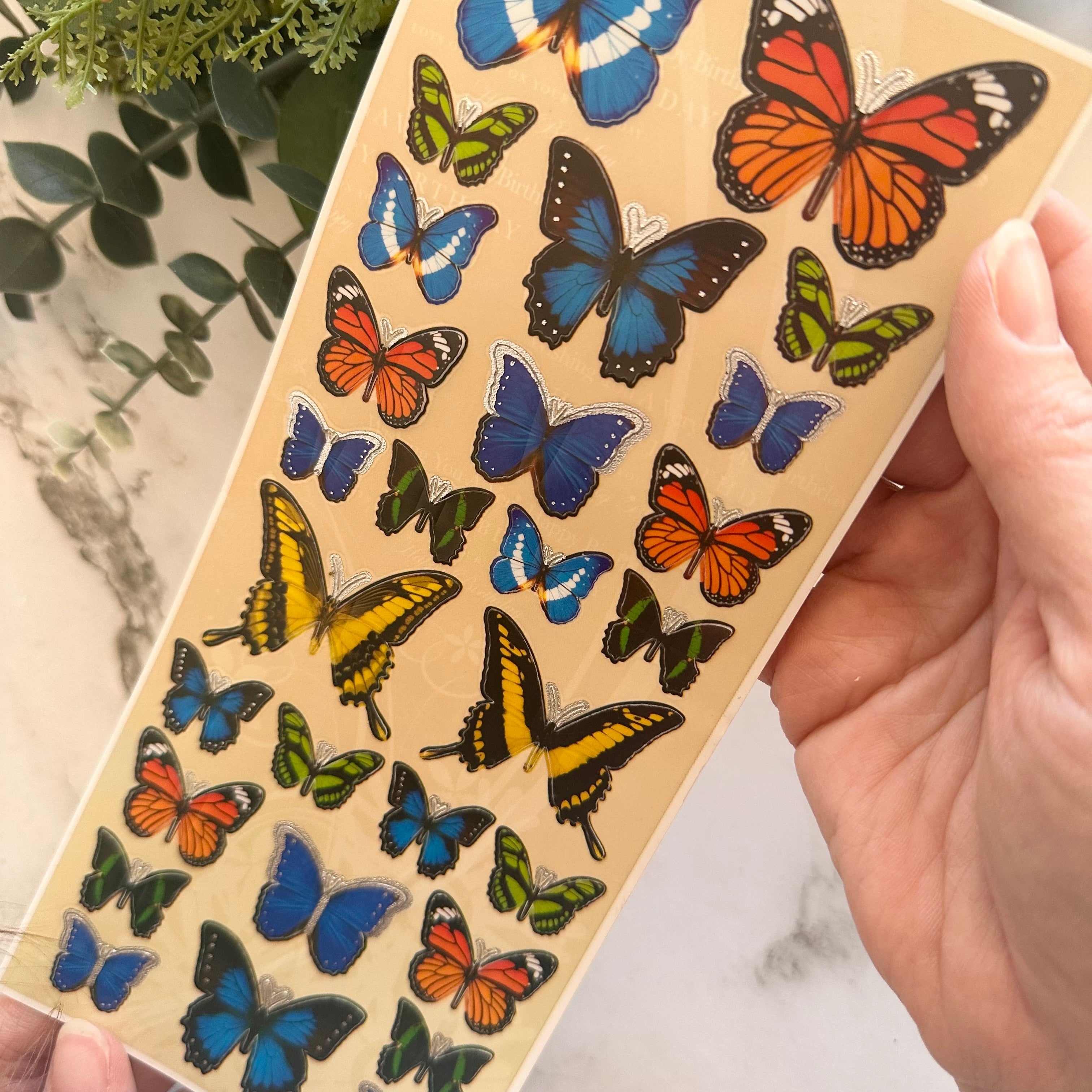 Each pack includes approximately 25 beautifully detailed butterfly and floral stickers designed with a raised, three-dimensional effect. The stickers adhere at the body, allowing the wings to be gently lifted for a realistic, layered look that adds depth and visual interest to your pages.