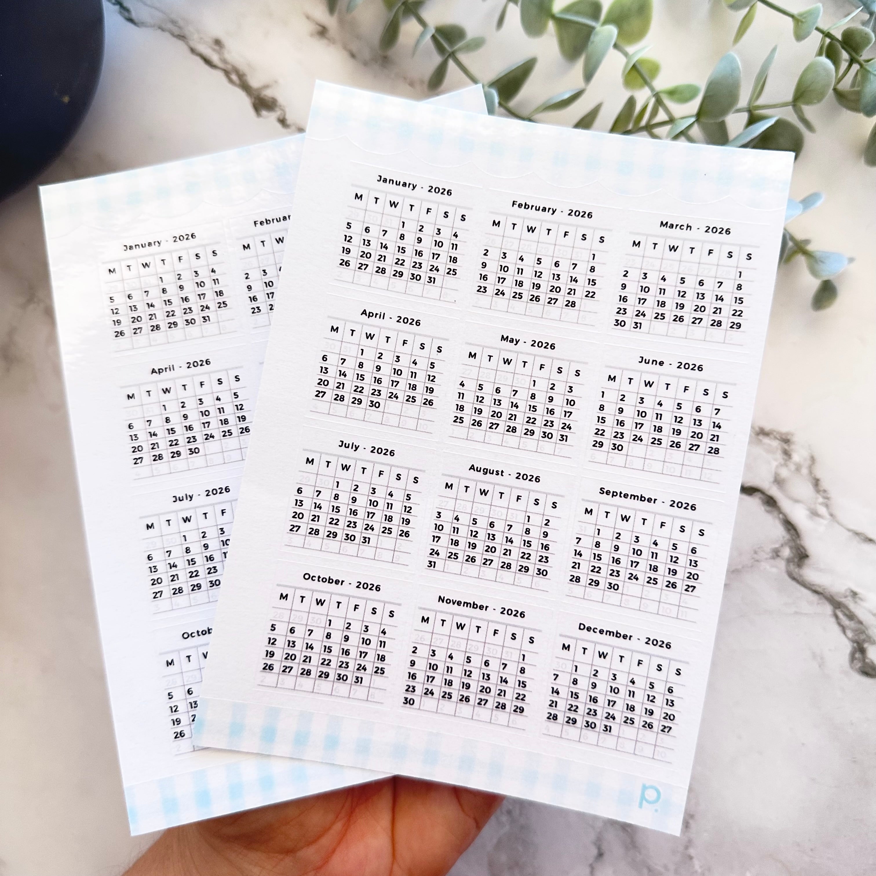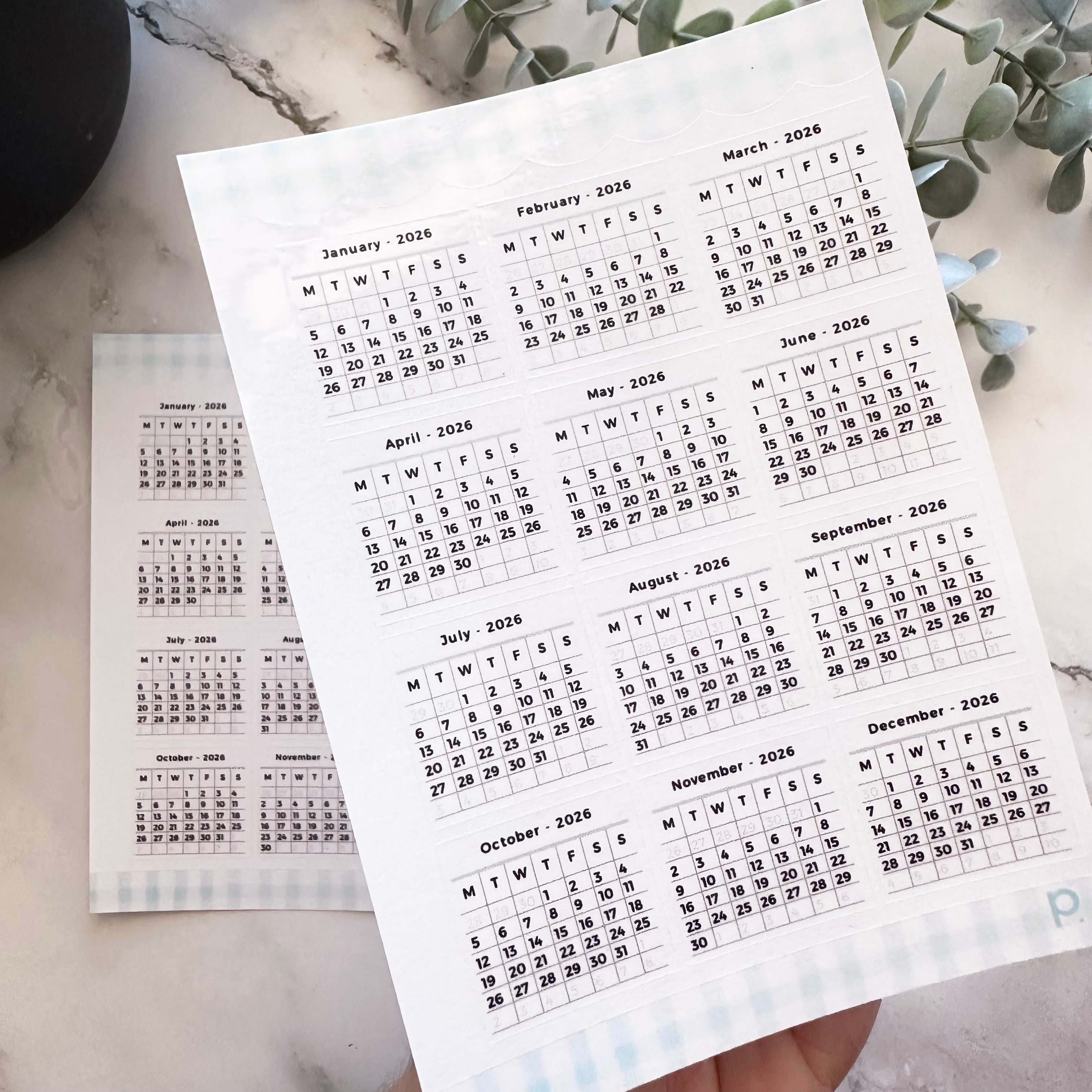 These Monthly Calendar Stickers make it easy to add compact date references to your planner, journal, or creative spreads. Each set includes two clear sticker sheets, with one full set of monthly calendar stickers per sheet, so you can quickly place a mini calendar wherever you need it.