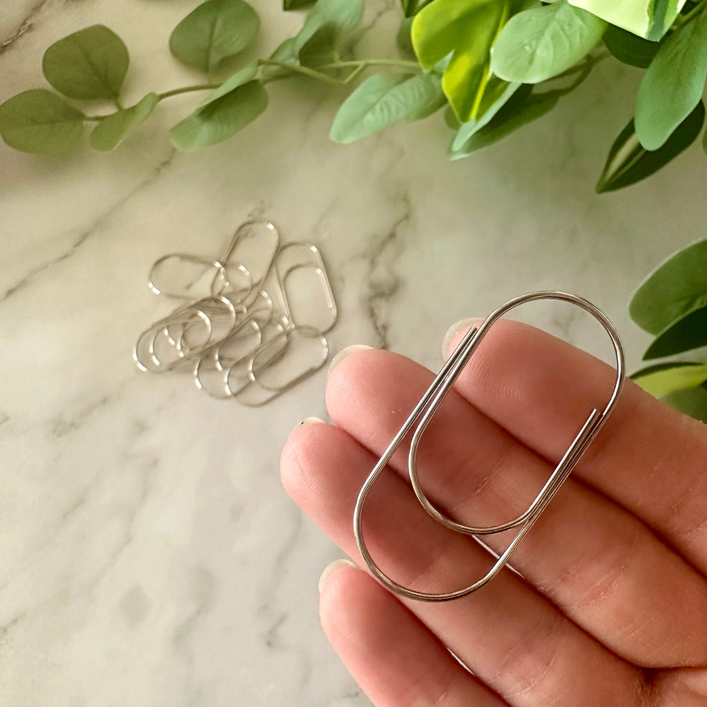 Our oversized paperclips are the perfect mix of practical and pretty. At approximately 50mm x 24mm, these chubby clips have plenty of space to hold your notes, mark important planner pages, or add a touch of personality to your stationery setup.